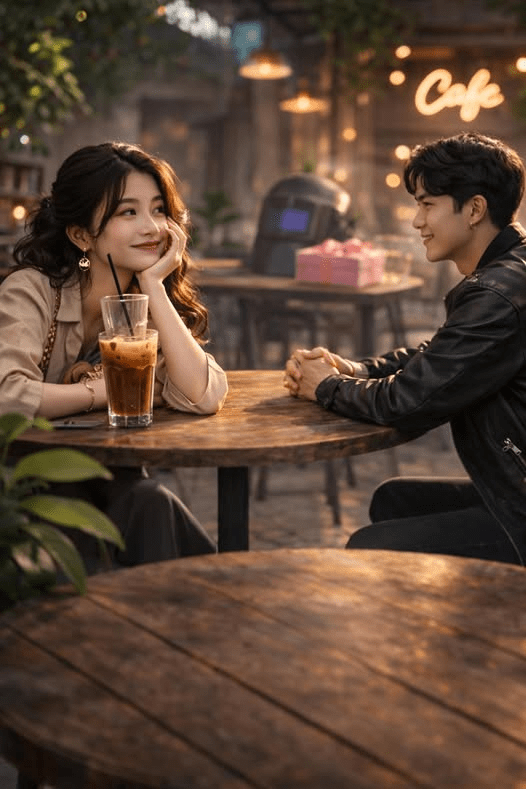Quán cà phê cũ. Linh ngồi bàn sát vách, trông thì có vẻ ngồi cho yên, nhưng thực chất là tai đang mở hết công suất để bắt wifi drama toàn vùng. ![]()
